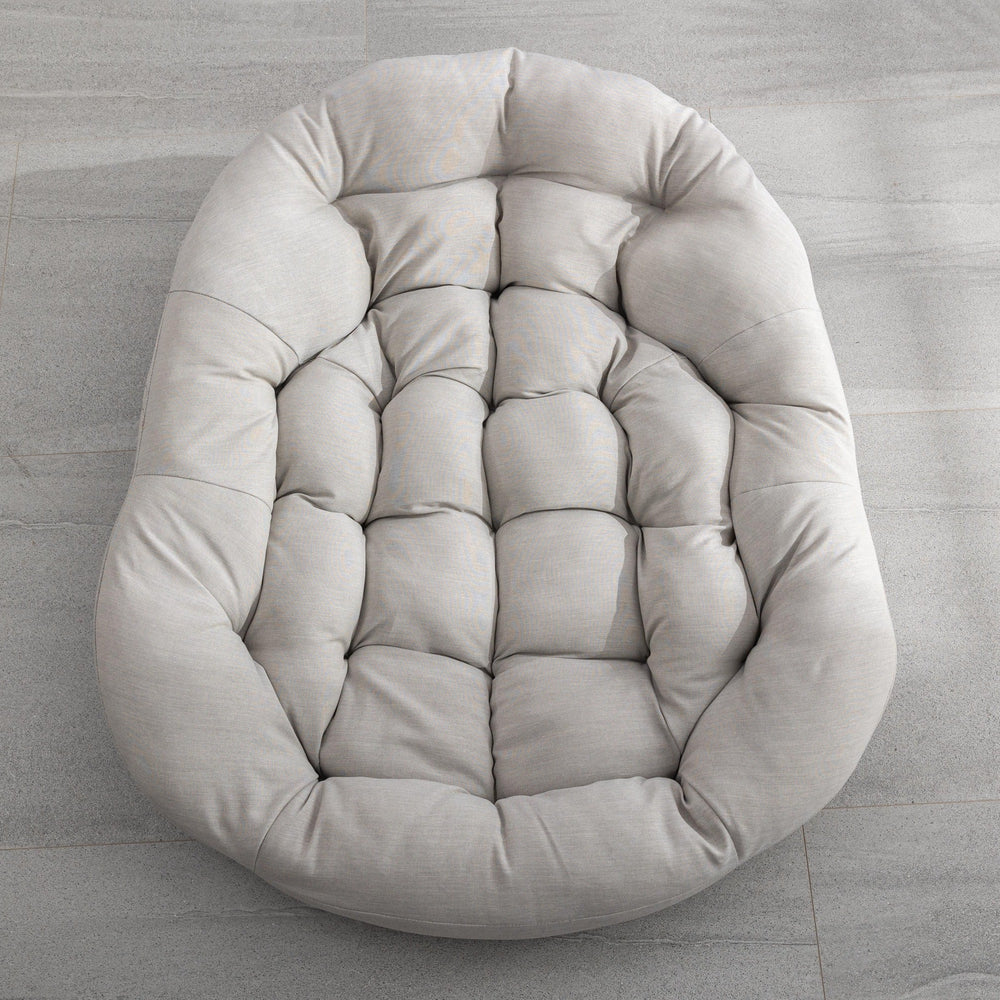 - Beige color with a large, ergonomic, curved design offering spacious seating