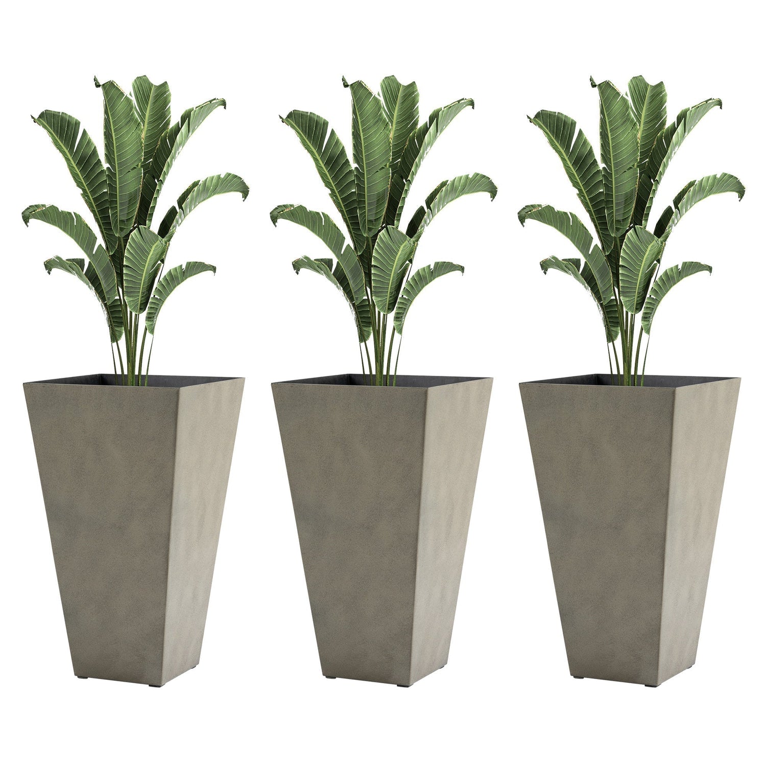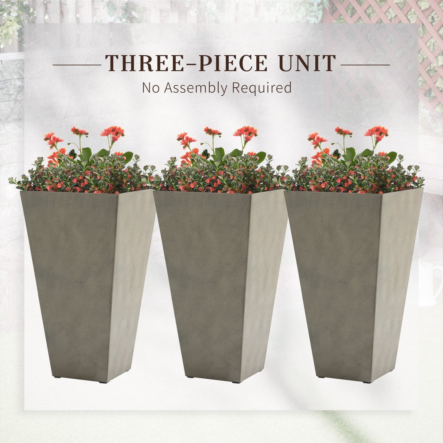 This set of three tall planters by Outsunny features a sleek square shape with a matte gray finish, perfect for patios, decks, living rooms, or porches. It blends modern style with practical functionality to enhance both indoor and outdoor spaces.