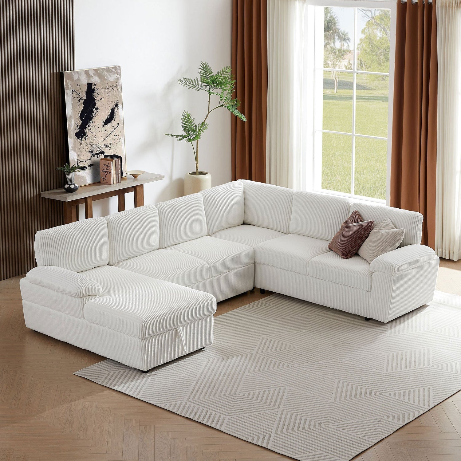 Modular Design for Growing Families: Allows for versatility and flexibilityEffortless to disassemble and transport with extra large sectional sofa. Easily combined into L- shaped sofa or sleeper sectional sofa. Storage Space: Ottoman is equipped with convenient storage space beneath allowing you to keep books toys blankets or out-of-season things ensuring they are within easy reach whenever you need them. Comfort and Deep Seating: Each seat cushion of the modular sectional sofa is filled with high resilience foam that gives good support for your body. Easy to assemble.