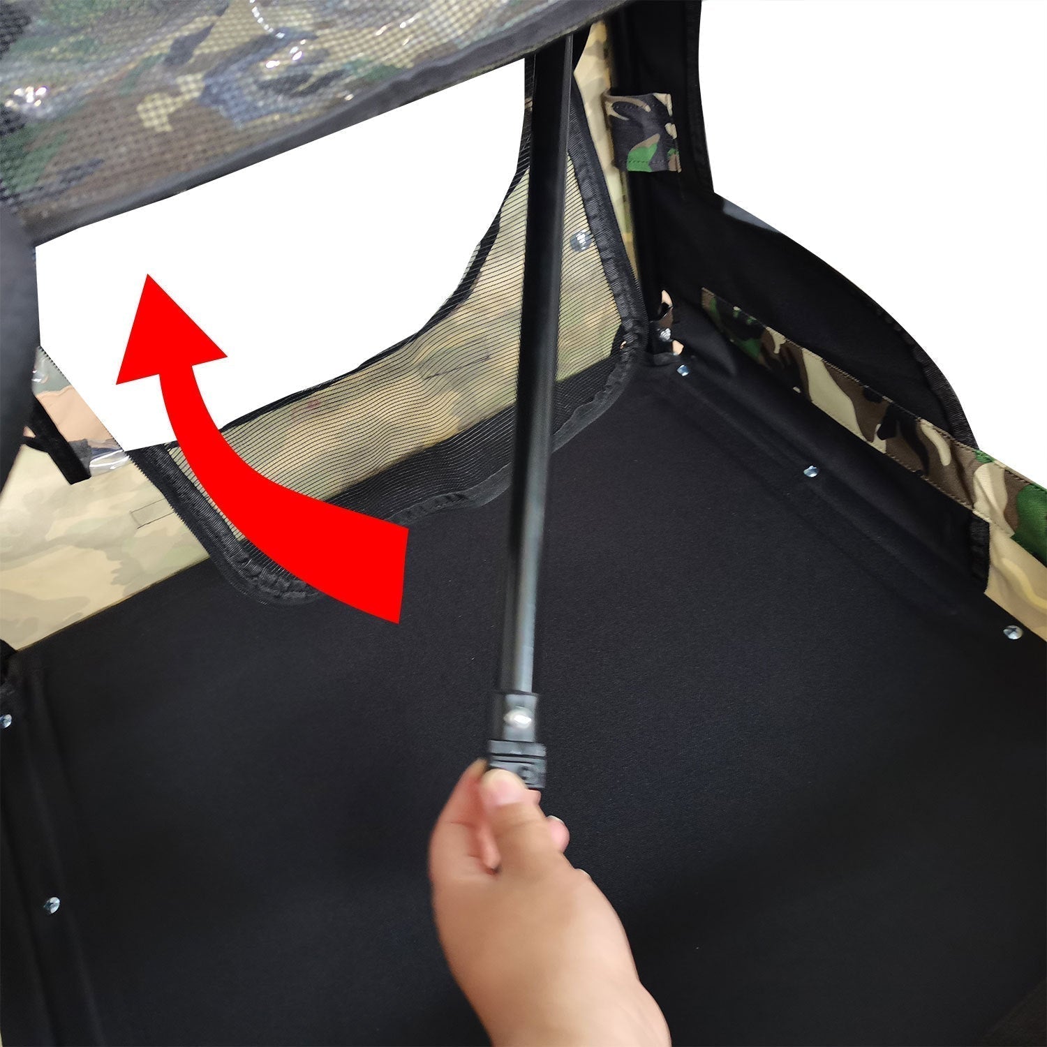 • Weatherproof & Breathable: Weather-resistant fabric with a 2-in-1 canopy and mesh shield allows your dog to enjoy the ride. Mesh windows and a spacious roof opening ensure proper ventilation, letting your pet enjoy the breeze and the view.