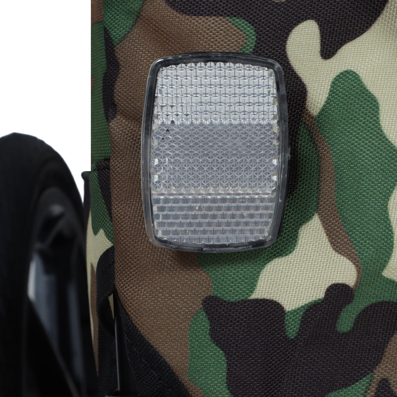• Comfort Features: The trailer is equipped with an inner leash and a non-slip floor to keep your pet secure. The adjustable leash helps prevent pets from jumping out of the trailer. Reflective lights on the front and back ensure excellent visibility. The reflector provides extra visibility when it is dark.