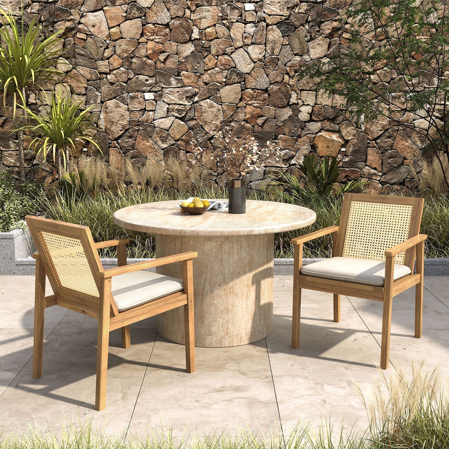 Preston - Outdoor Dining Chair With Cushion (Set of 2) - Teak / Beige