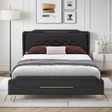 This queen size leather bed frame with wingback headboard and footboard adds sophistication and comfort to your bedroom. Designed as a platform bed, it pairs modern style with practical functionality for a stylish sleeping space.