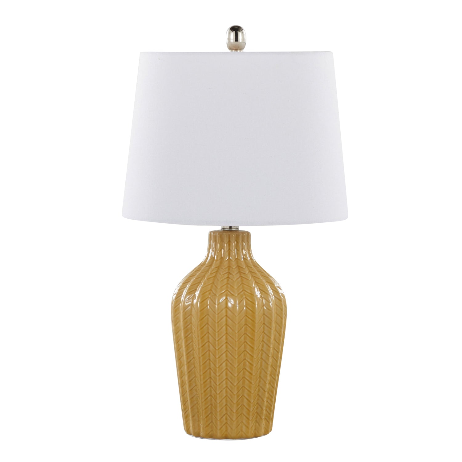 - Glossy ceramic body with a chevron pattern