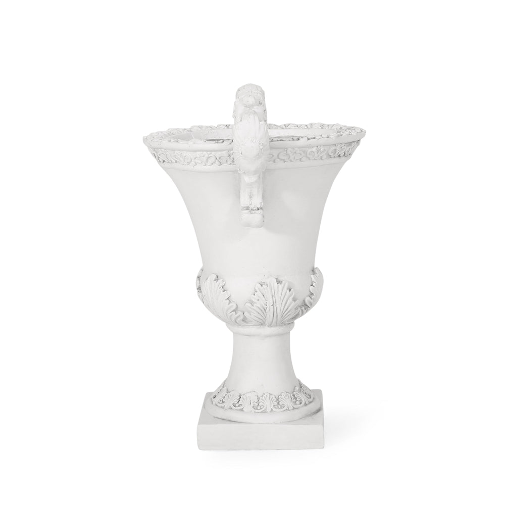This Roman style garden urn planter features an elegant antique white finish, ideal for enhancing patios, gardens, or indoor spaces. Its multifunctional design accommodates flowers, herbs, succulents, and vegetables with style and practicality.