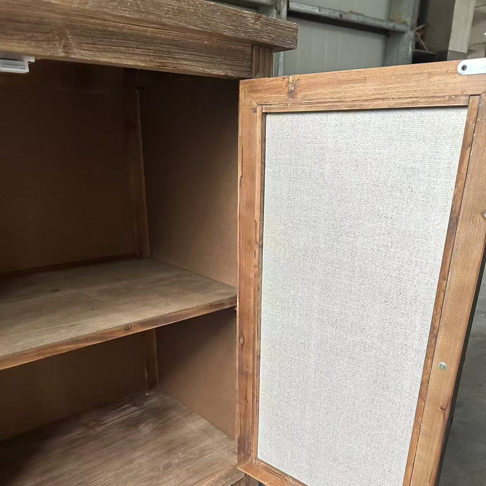 This rustic storage cabinet combines solid wood and metal doors to offer functional storage with vintage-inspired style. Suitable for living rooms, hallways, or bedrooms, it enhances your décor with warm, aged character.