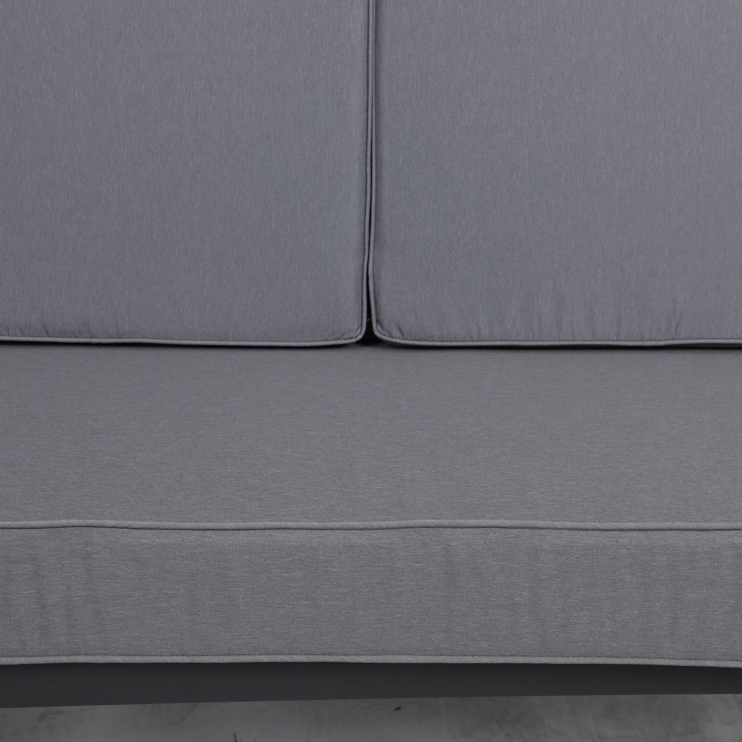 - Includes one seat cushion measuring 48"W × 24"D × 4"T and two back cushions measuring 24"W × 20"D × 4"T