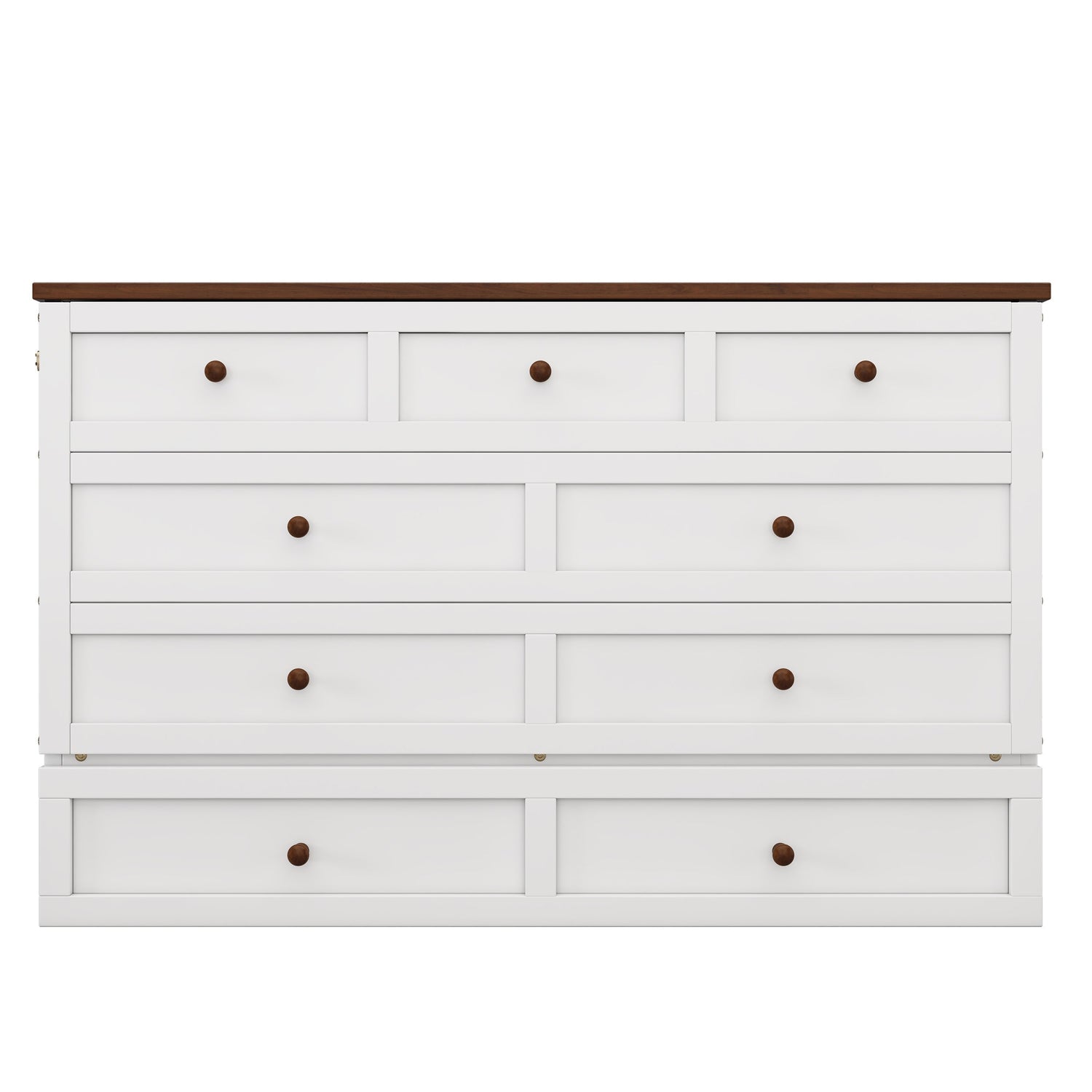 Solid Pine Murphy Bed Chest with Charging Station and Large Storage Drawer - Queen - White+Walnut