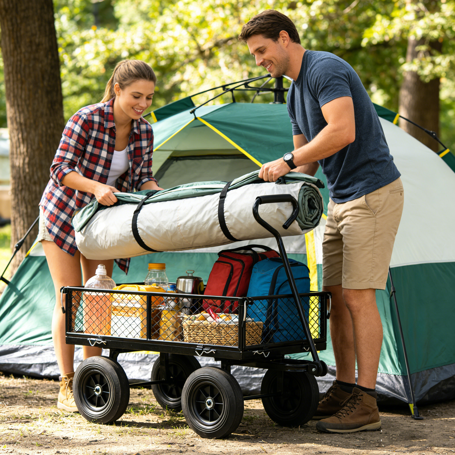 This solid wheels garden cart wagon is designed to make transporting tools, firewood, and gardening supplies effortless. It is an ideal accessory for garden, yard, or outdoor home tasks, combining functionality with a durable design.