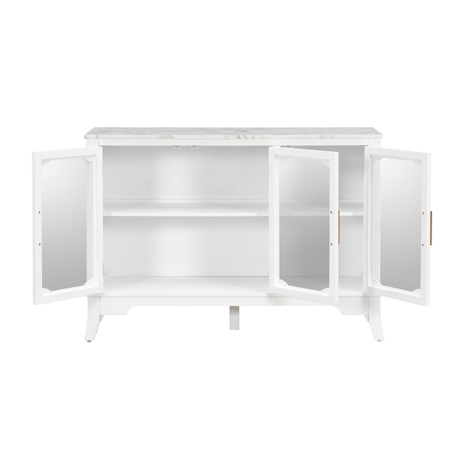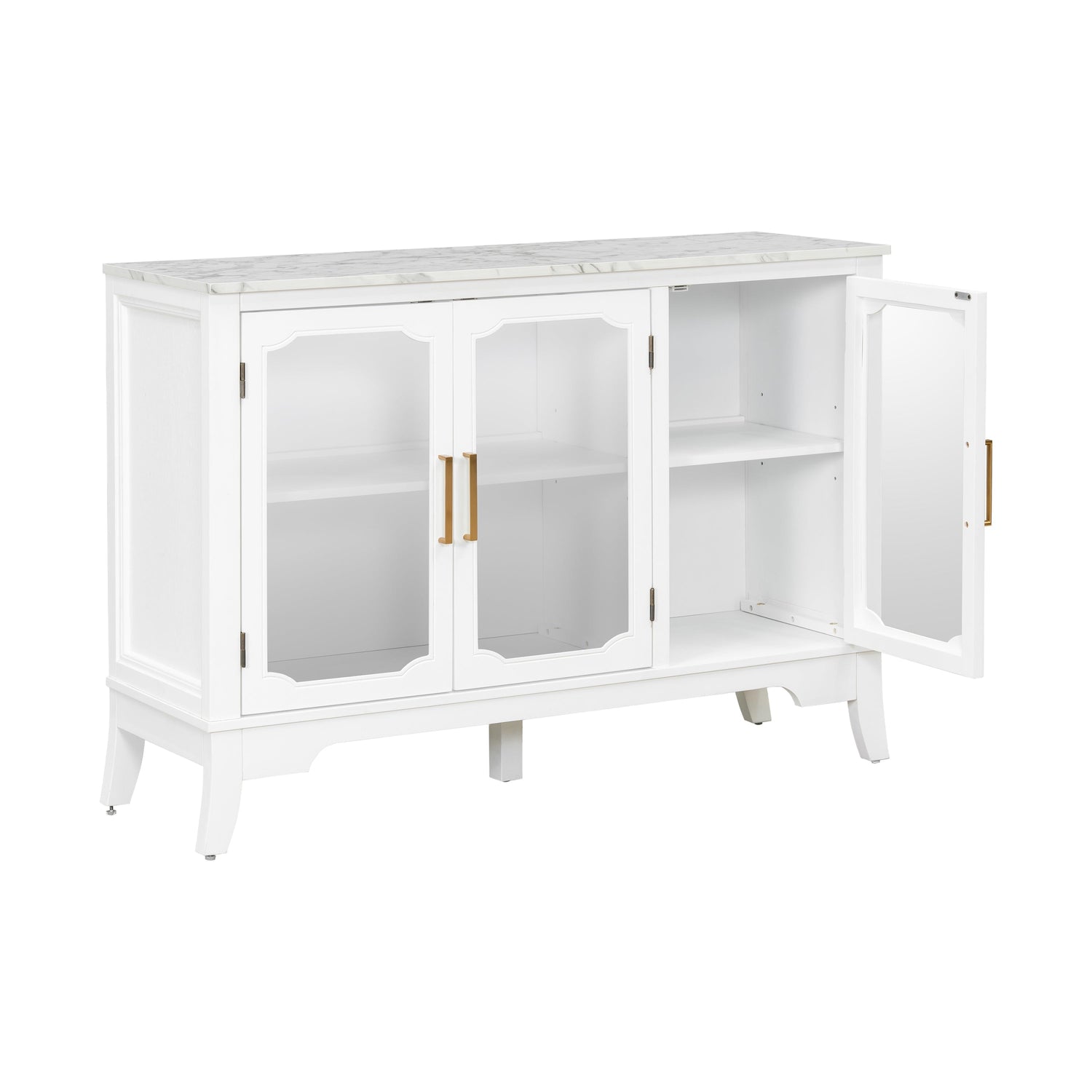 This storage cabinet is designed for dining rooms or living spaces, offering both functional storage and a sleek, modern aesthetic. Its white finish and stylish hardware make it a versatile addition to your home.