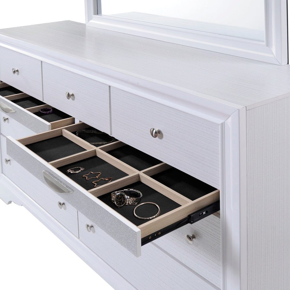 - Dresser has seven drawers providing ample storage