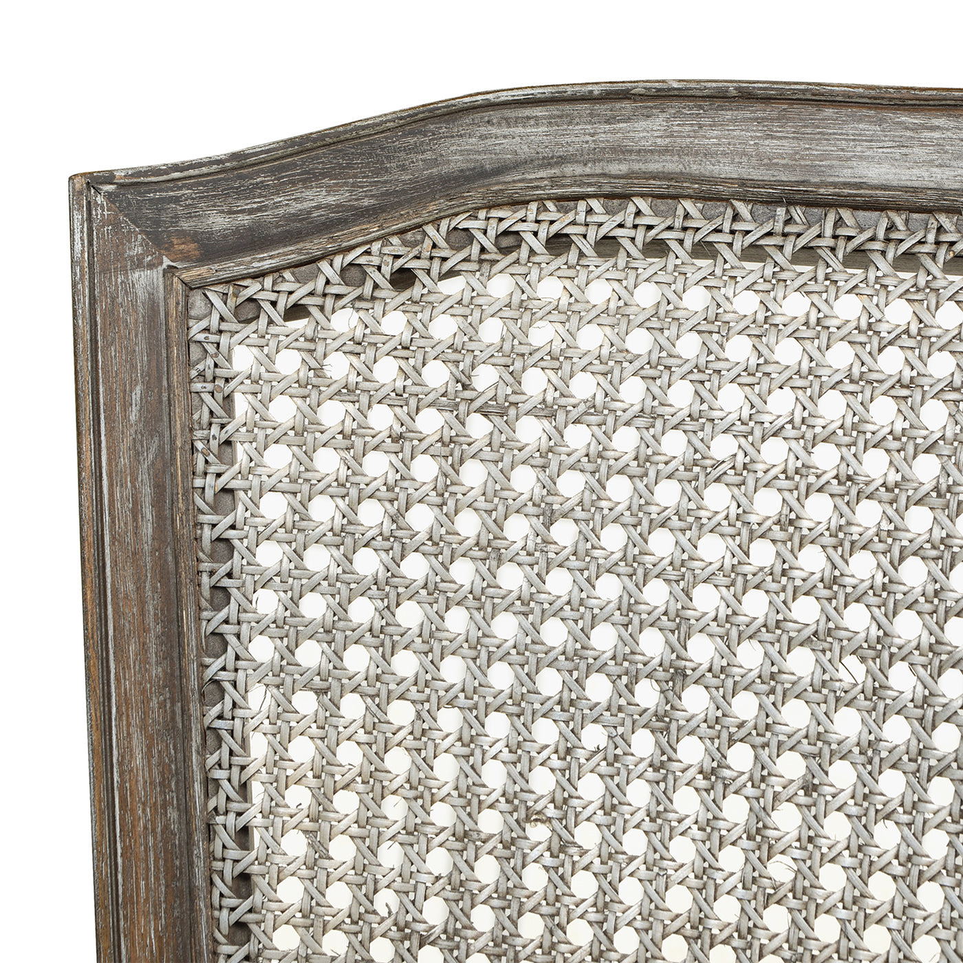 • Solid oak wood frame with a weathered gray-brown finish highlighting natural wood patterns and knots