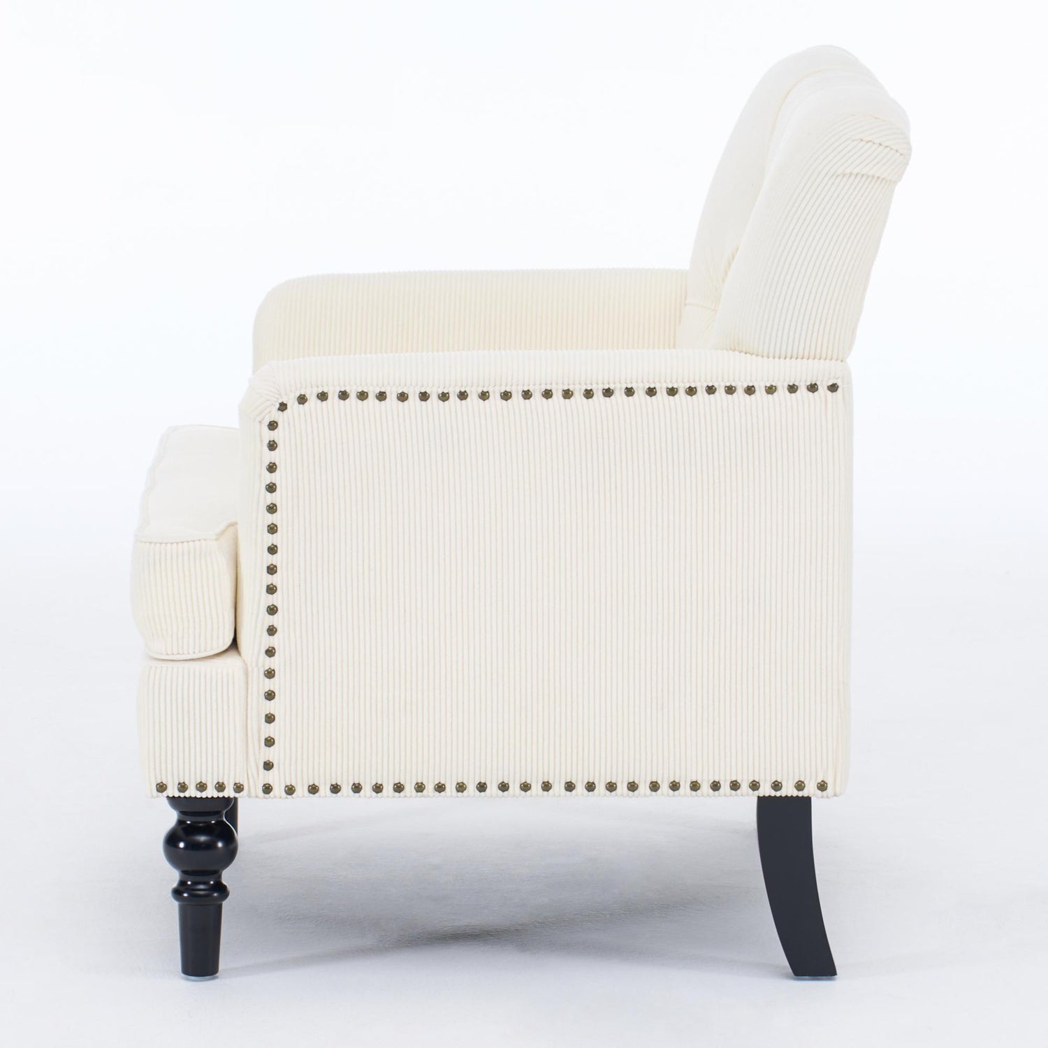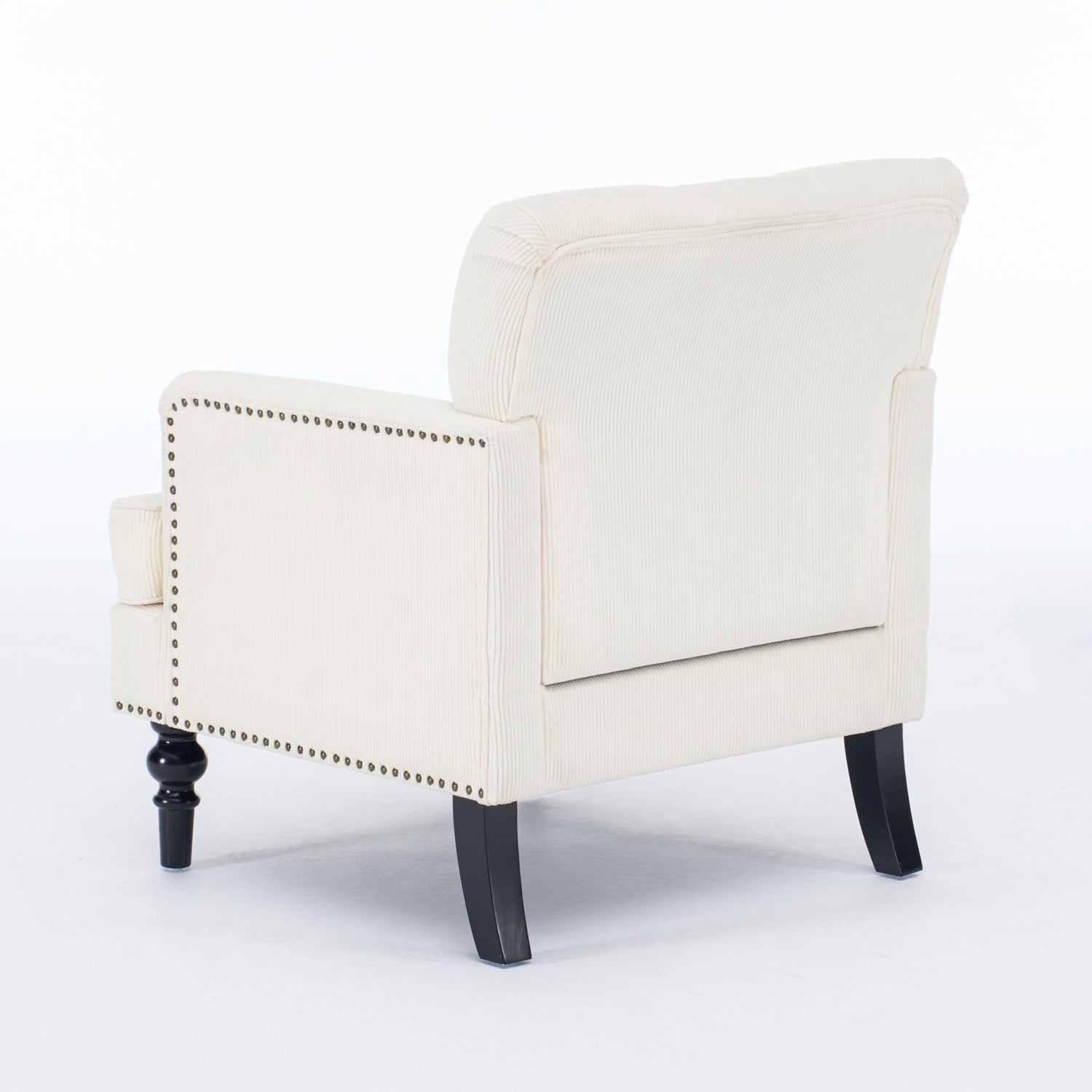 This tufted club chair provides a stylish and comfortable seating option ideal for the living room or bedroom. It combines functional comfort with a mid-century modern design featuring studded detailing.
