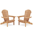 This set of two wooden folding Adirondack chairs is designed for outdoor use, ideal for patios, porches, decks, or gardens. Combining classic style with functional comfort, they offer a traditional yet practical seating solution.
