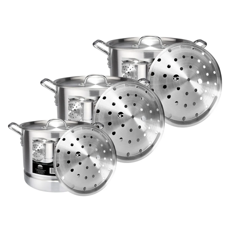 3 Piece Aluminum Stock Pot Set with Steamer - 24Qt, 32Qt, 40Qt