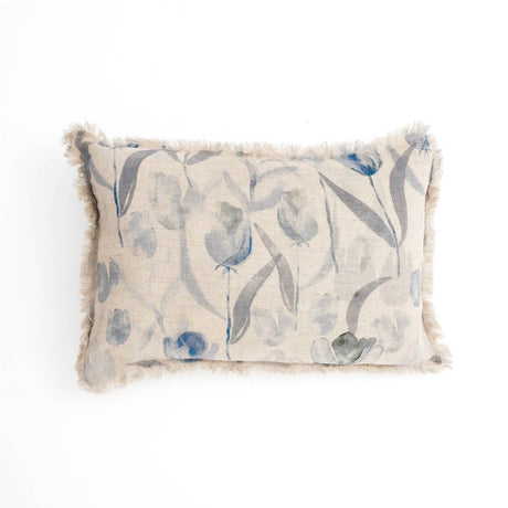 Linen Printed Lumbar Pillow with Fringes Blue & Grey 16x24
