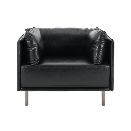 Vintage Black Faux Leather Lounge Chair with Solid Wood Frame