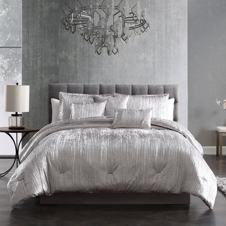 Turin Silver Crinkle Velvet 7PC Bedding Set