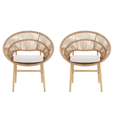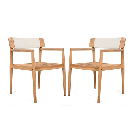 Creative Braided Acacia Wood Outdoor Dining Chairs with Armrests – Set of 2