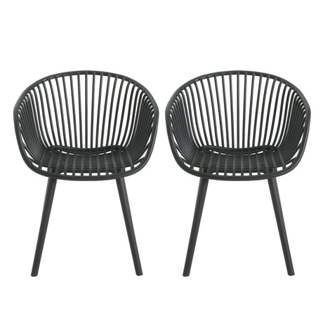 Modern Mykonos Outdoor Dining Chairs Set of 2 with Weather-Resistant Black Plastic Resin