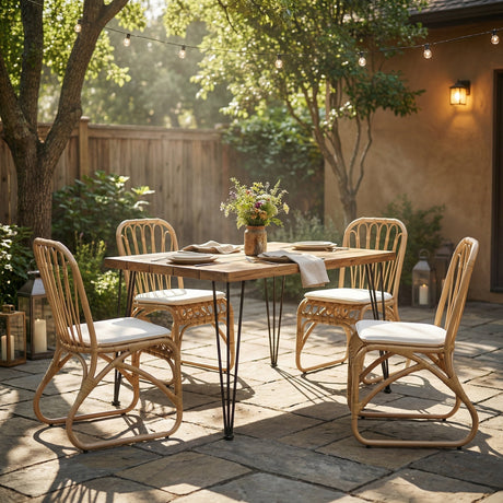 5 PCS Outdoor Dining Set for 4 with Acacia Wood Top & Rattan Chairs