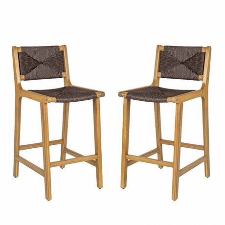 Acacia Wood Outdoor Armless Barstool - Teak Set of 2