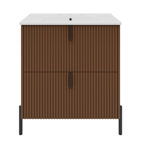 Fluted Bathroom Vanity With Ceramic Sink, Freestanding Design