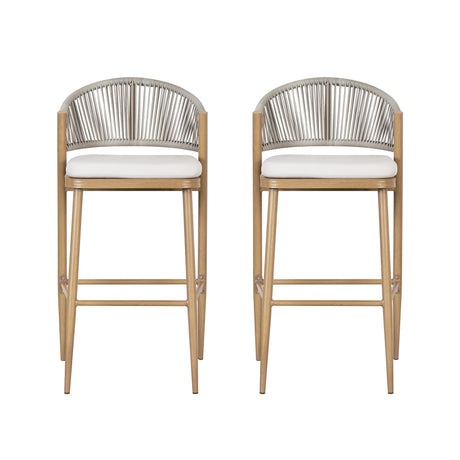 Ladd Outdoor Metal Wicker Barstool Light Gray Faux Wicker Set of 2