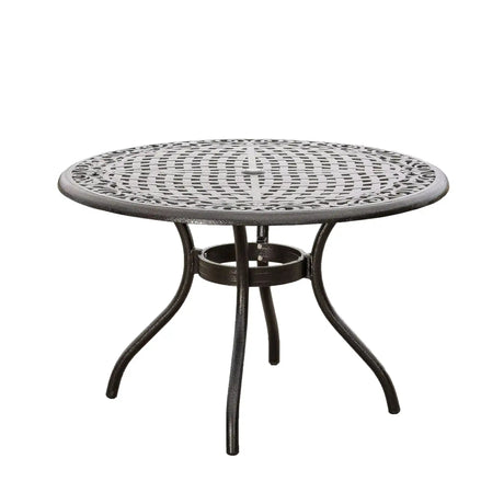 Outdoor Cast Aluminum Dining Table With Lattice Top And Umbrella Hole - Black
