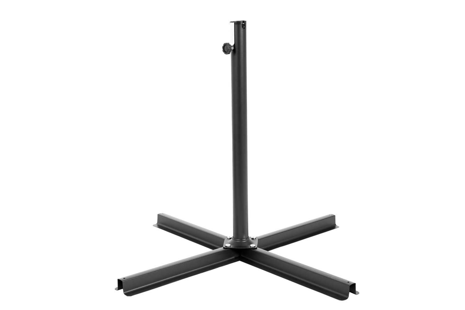This market umbrella has a crank mechanism, you can easily open and close the umbrella in a few seconds by rotating the crank handle. No base are included and lightweight.