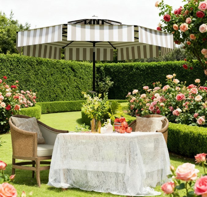 - Light gray and white striped design adds an elegant outdoor aesthetic