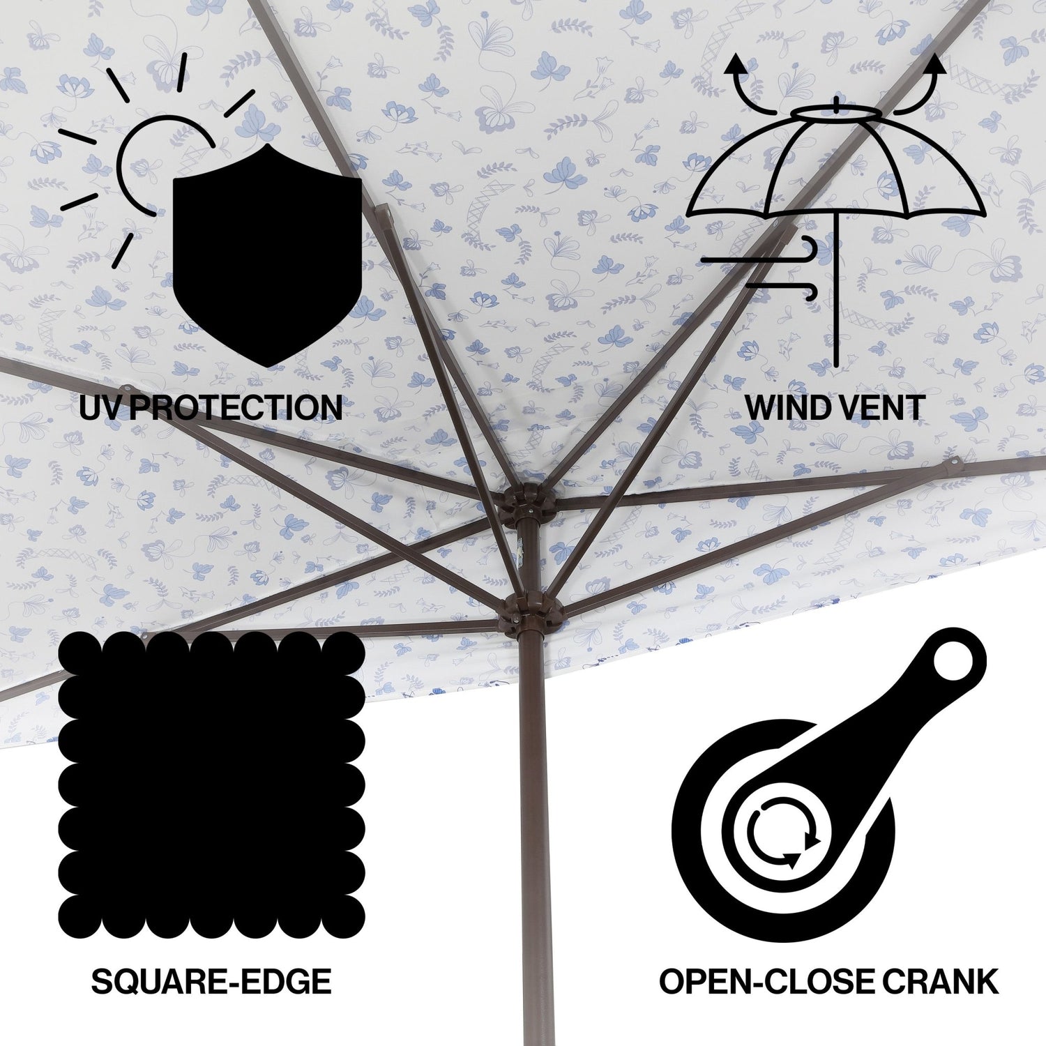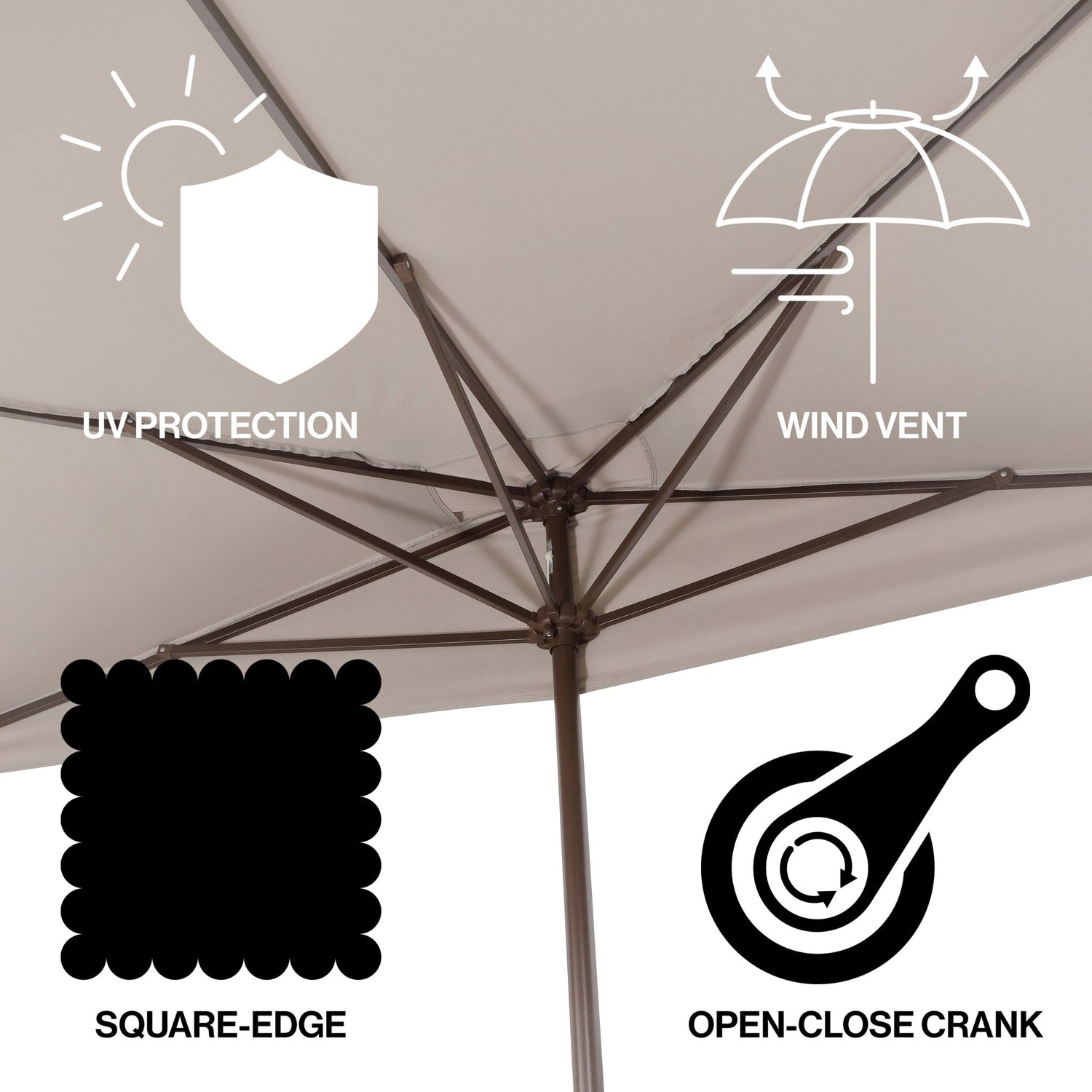 Crafted with a durable aluminum frame and solid cream outdoor canvas, it offers long-lasting use and timeless charm. The manual crank lift ensures easy operation, while a wind vent at the top promotes airflow and stability on breezy days.