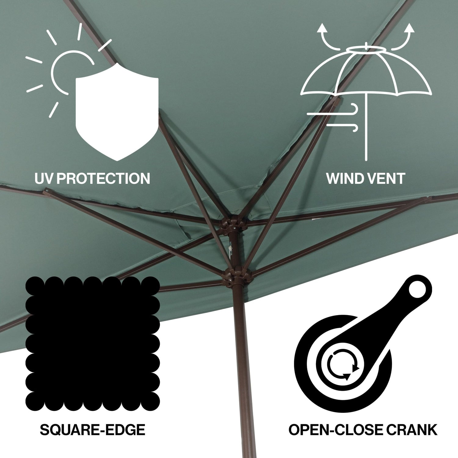 Maximize shade in compact outdoor spaces with our Half Patio Umbrella, thoughtfully designed for balconies, narrow patios, and tight corners. With its mid-century inspired square-scalloped edge and white piping, this umbrella blends traditional style with modern functionality.