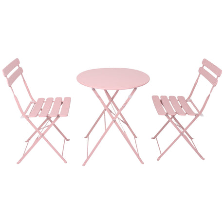 3 Pieces Patio Bistro Balcony Metal Chair Table Set - Pink