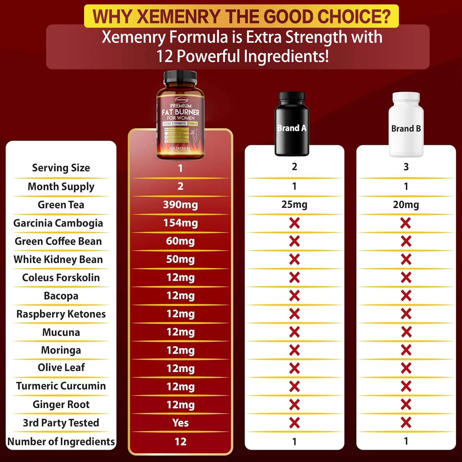 🔥Our fat burning capsules contain 12 of the most potent sources of fat burning energy: Garcinia Cambogia, Green Tea Extract, Green Coffee Bean, White Kidney Bean Extract and 8 others.