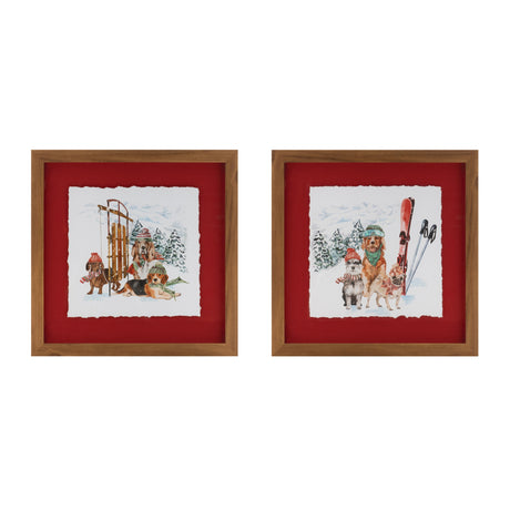 Framed Dog Sled and Ski Print Under Glass (Set of 2)