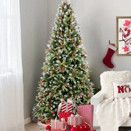 9-Ft. Flocked Pine Valley Christmas Tree with Warm White LED String Lighting