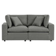A haven for cozy relaxation right in your own backyard, Commix features plush comfort, a clean-lined design, and a spacious profile that makes an attractive statement on the porch, patio, or by the poolside. Made for sprawling out in the sun or curling up with a good book, this patio loveseat features generously padded cushions covered in water-resistant and UV-resistant covers making them ideal for your outdoor space. This outdoor two-seater sofa features an all-weather construction with a powder-coated aluminum frame and non-marking foot caps to protect flooring surfaces. Beckoning guests to sit and stay a while, the Commix Outdoor Patio Collection is perfect for al fresco entertaining or lounging amidst warm weather. Each Seat Weight Capacity: 300 lbs.