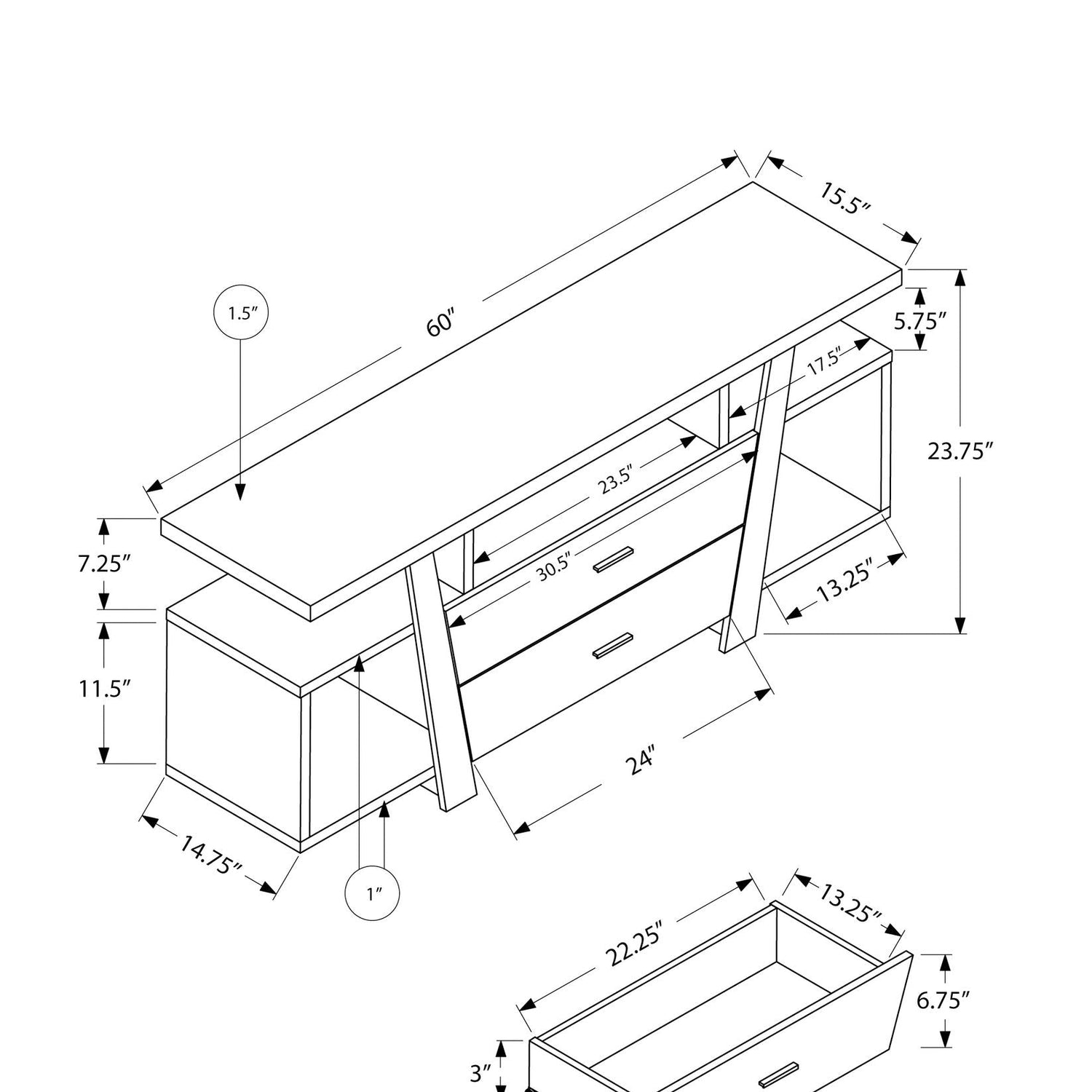 - Two large storage drawers to keep electronic accessories organized and hidden